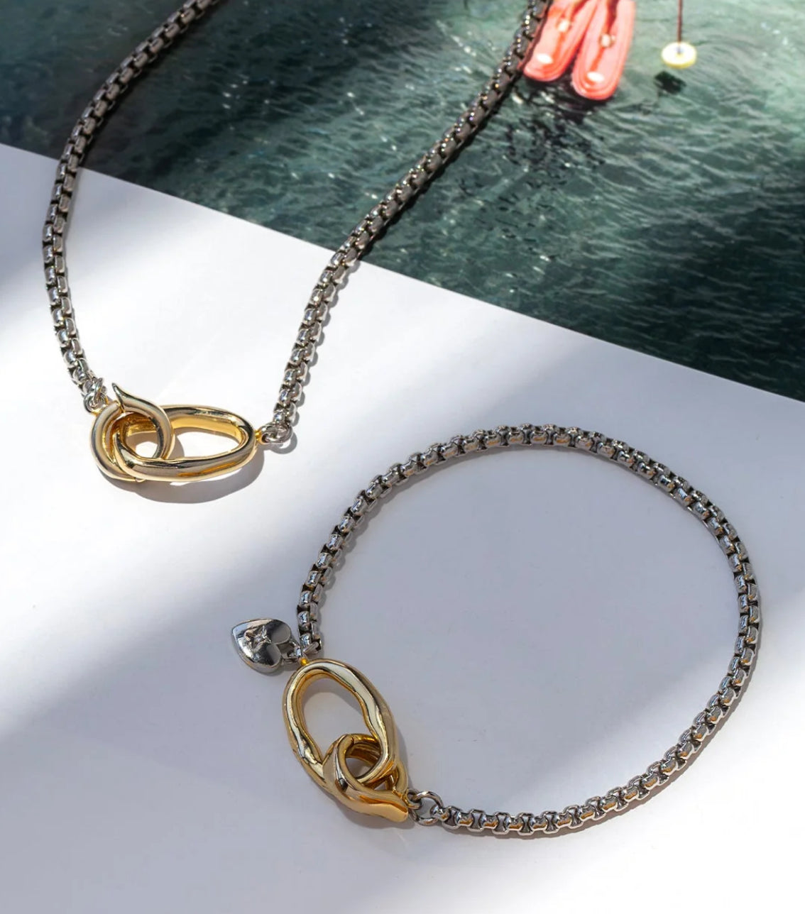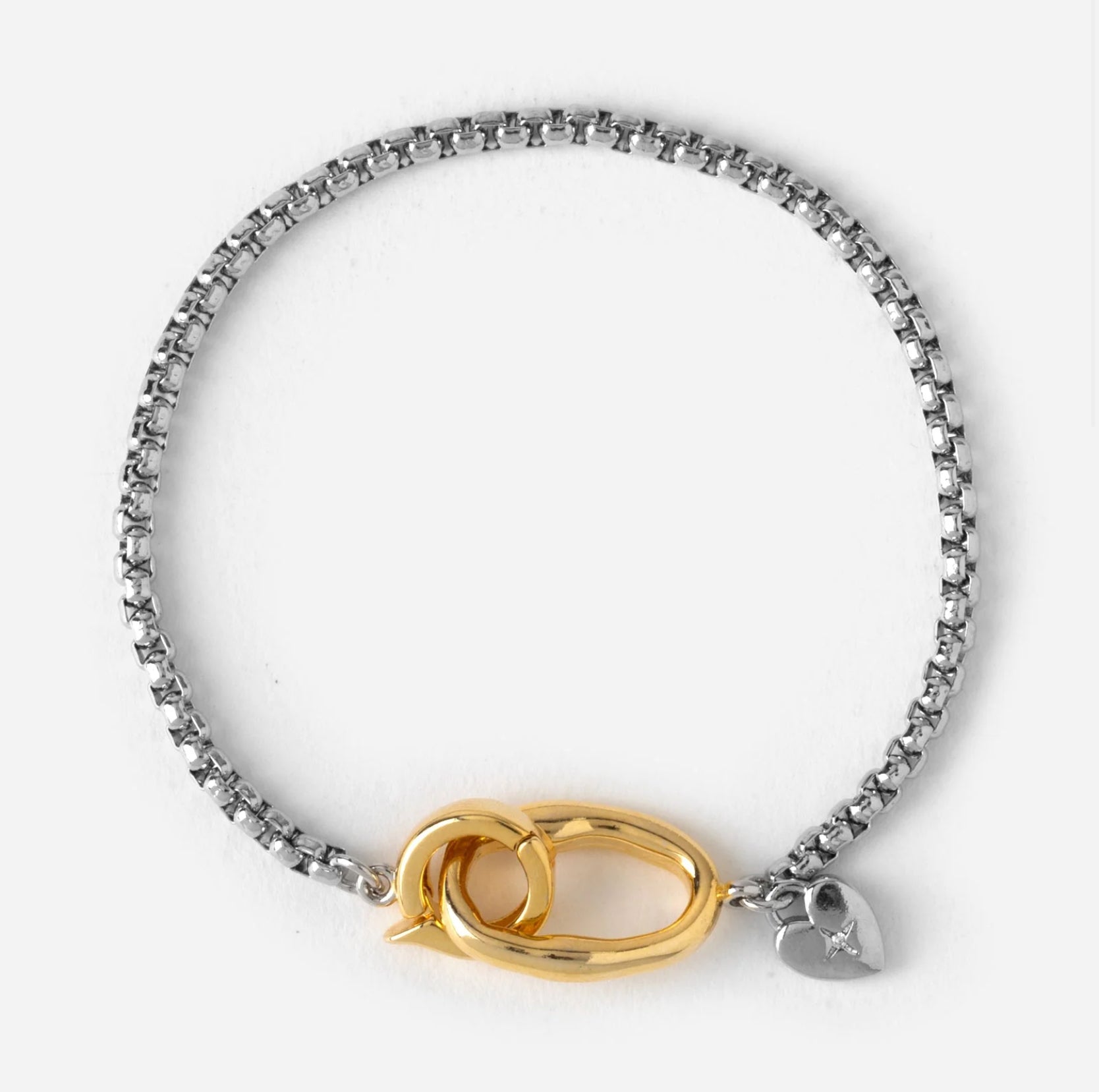 A classic staple for mixing and matching, our Tide Break Bracelet brings modern contrast and everyday edge. Crafted with sleek silver and gold accents, this bangle bracelet pairs effortlessly with both bold and minimalist styles. Whether you wear it solo or stack it with your other favorite jewelry, its comfortable fit makes it perfect for daily wear. Choose between S/M (7" in length) and M/L (8.5" in length)