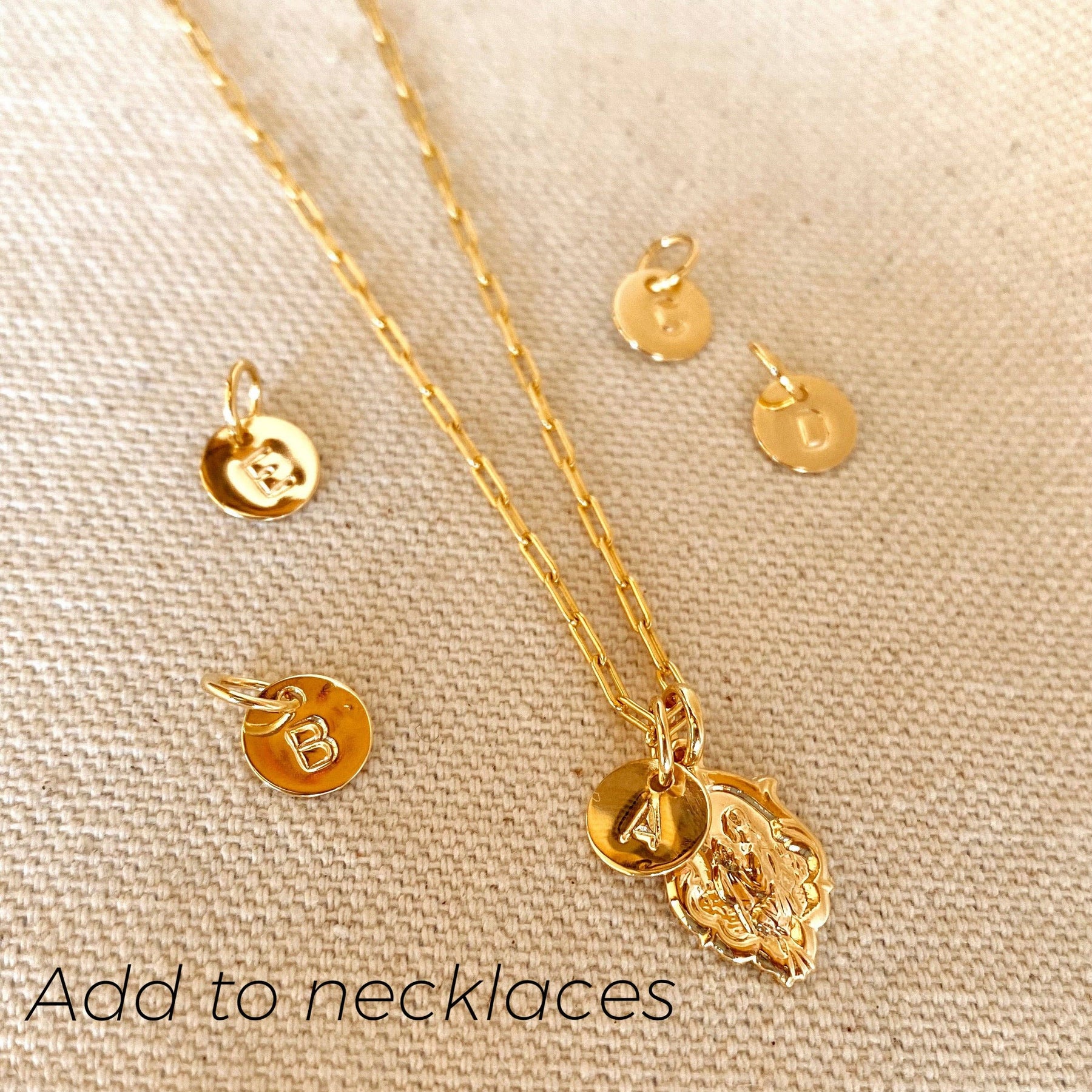 A little detail that makes your jewelry outfit look amazing. Tiny initial letter charms that goes along with any piece of necklace, bracelet or even in your anklet. You may combine with medals, plate pendant or any other specific charm for a exclusive look. Size: 6mm diameter