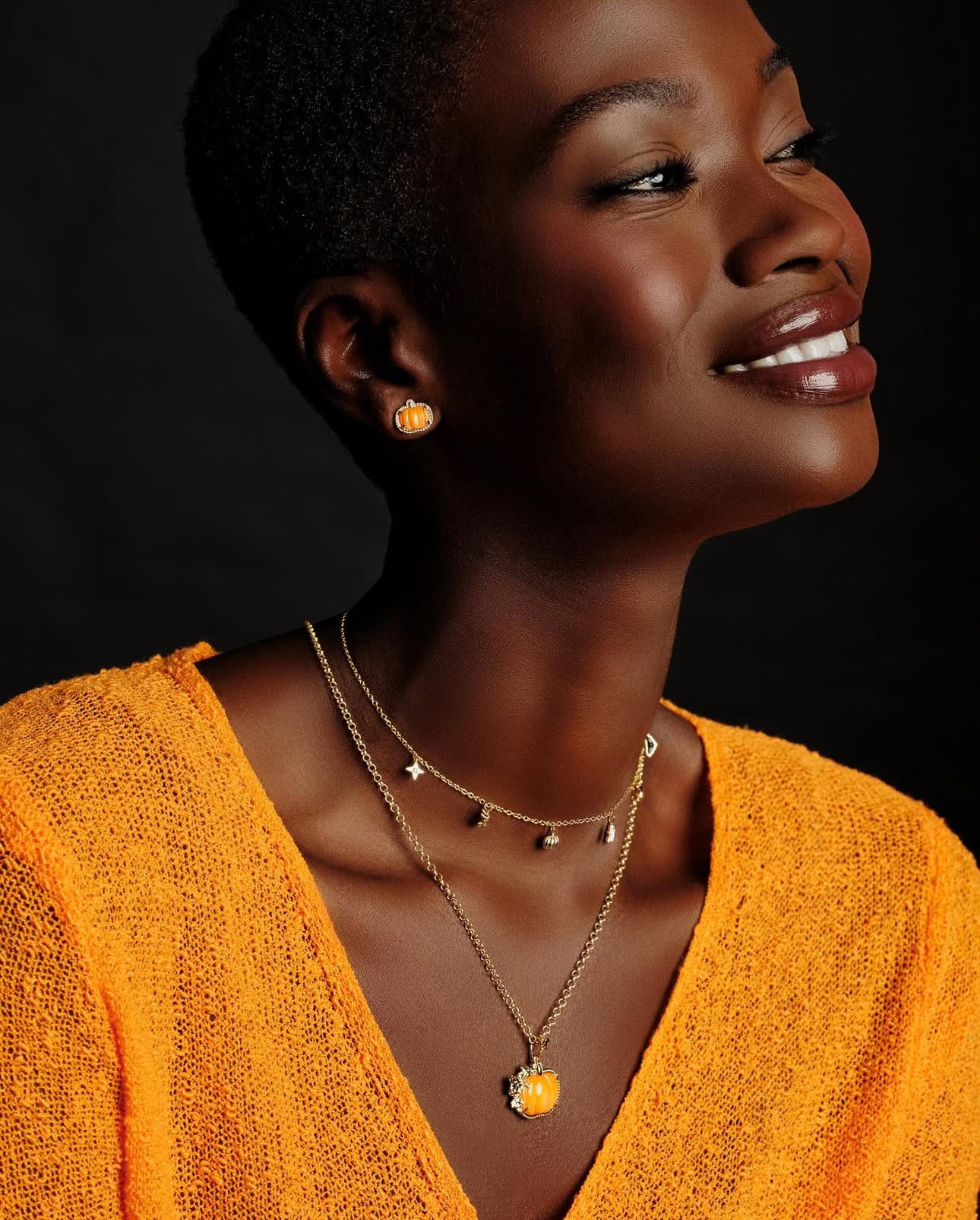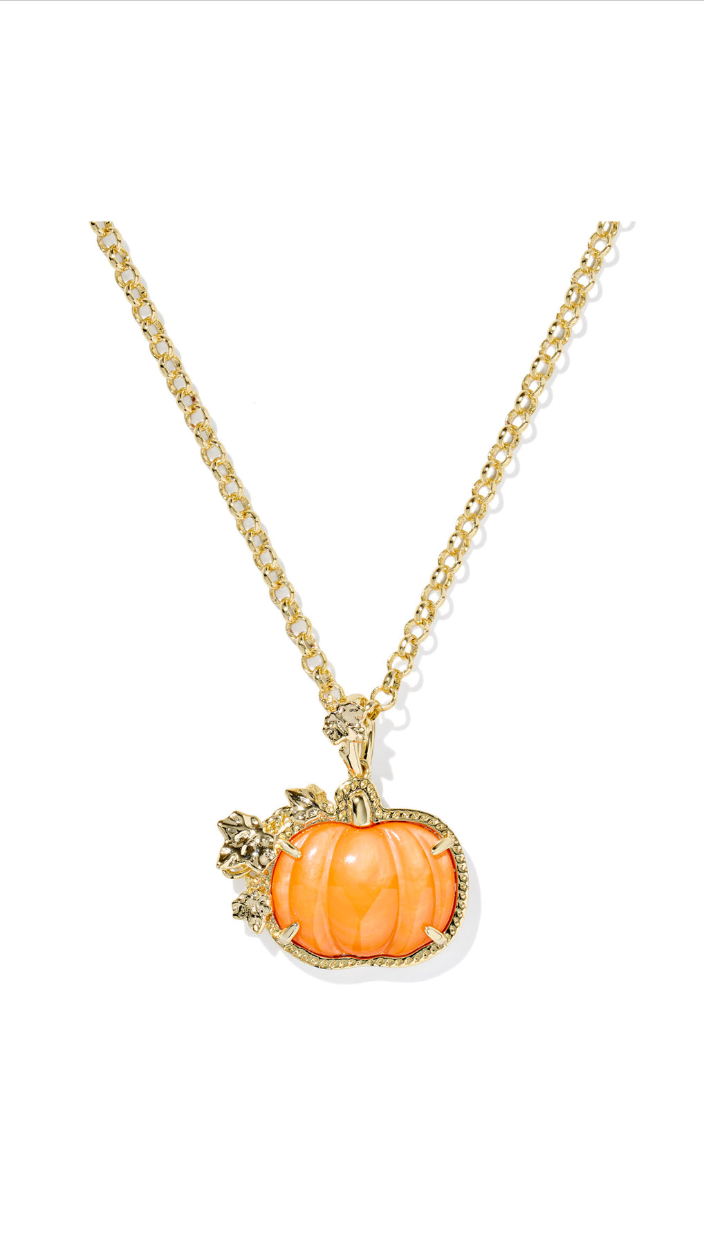 It’s no trick that the Pumpkin Gold Long Pendant Necklace is the perfect treat for fall! This festive style features a pumpkin charm with vine accents and an adjustable chain so you can add some fall flair to any look.
