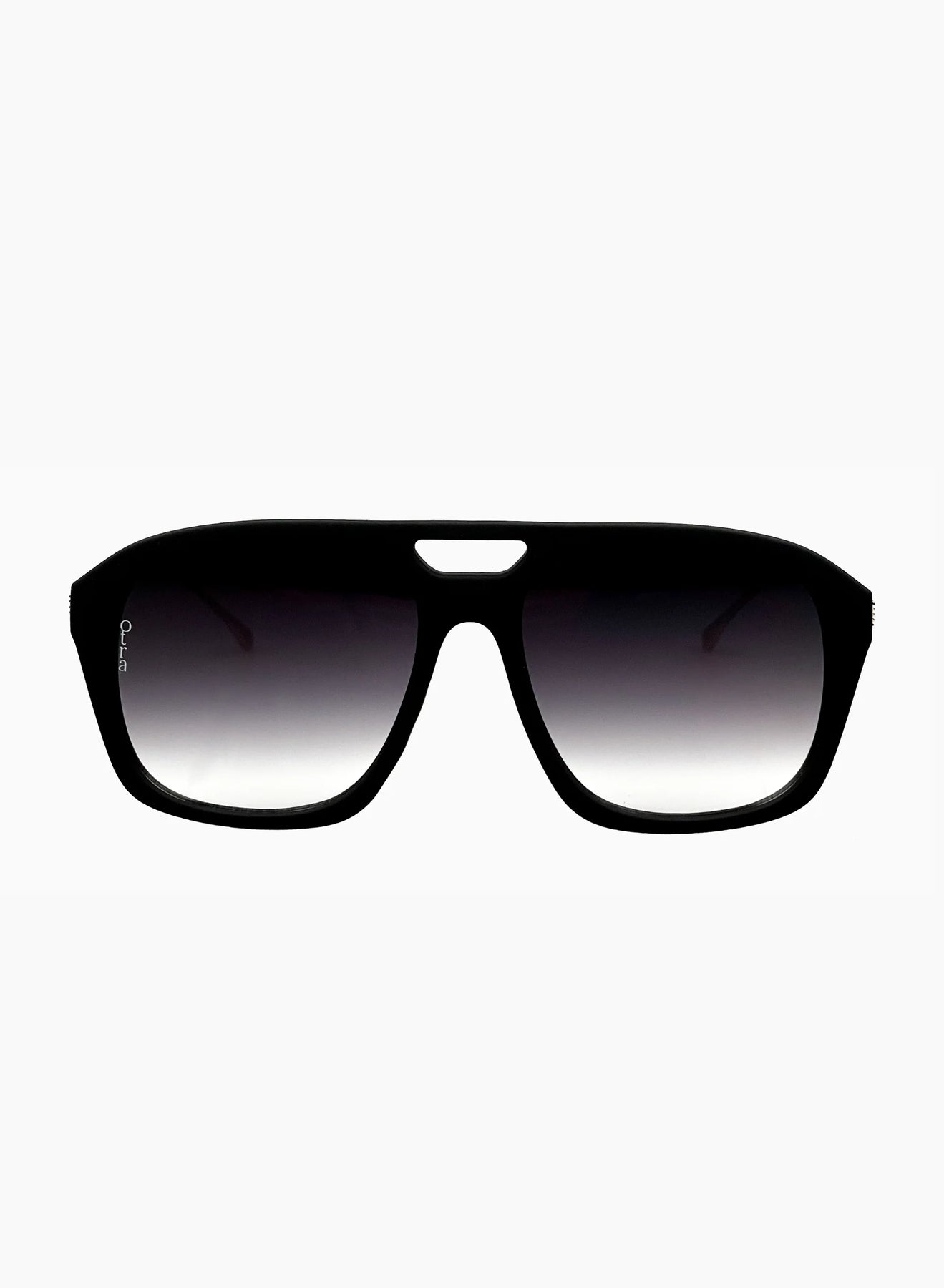 Oversized rounded sunglasses in sleek black, paired with smoke gradient lenses for a soft, tonal finish.