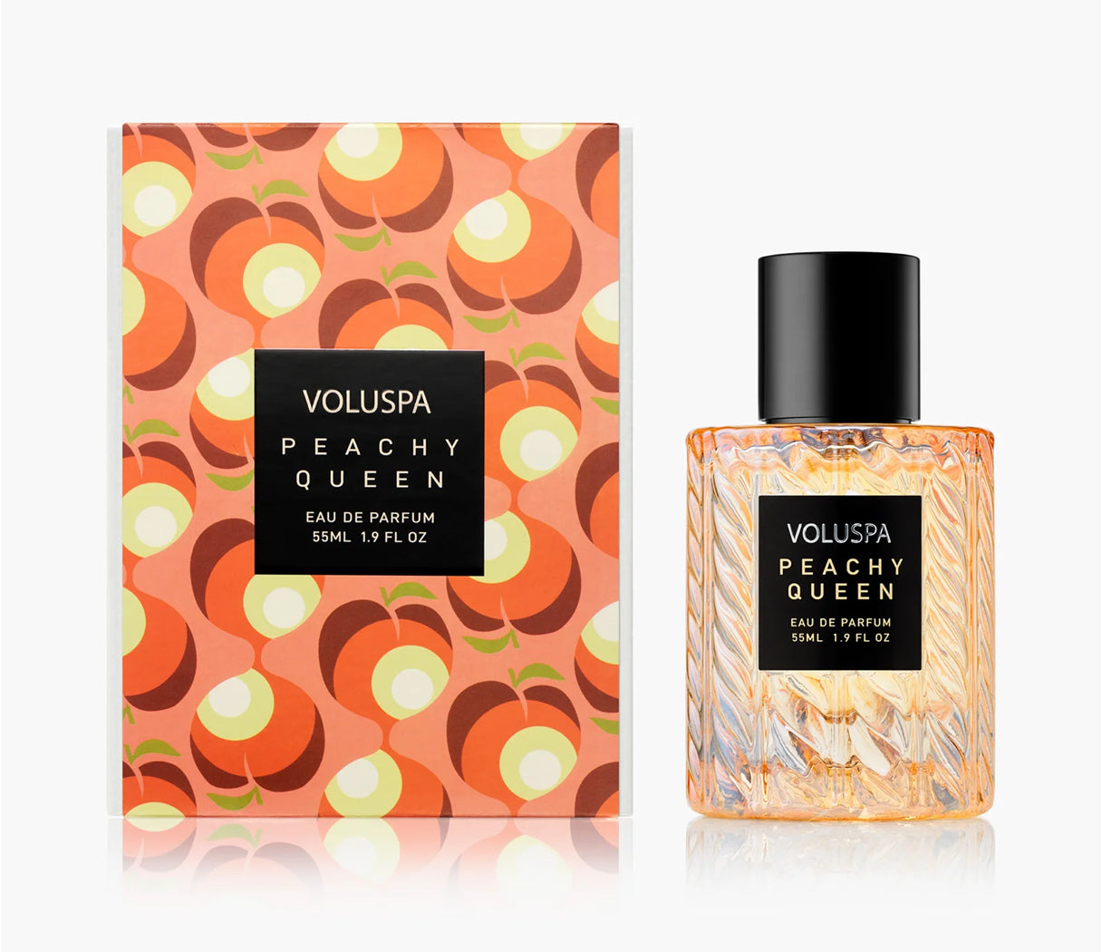 It is a good day to be a Peachy Queen. Adorn your senses with a crown of golden state fruits and florals. Reign your terrain with Crisp Lemon, Marigold Mandarin and Sun-kissed Peaches. Feel the floral laced air of Frangipani and Tuberose. Command a realm where the weather is always 72, sunny and Peachy Queen.