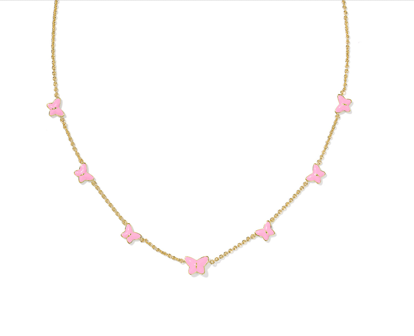Add a sweet bit of shine to your necklace collection with the Lillia Butterfly Enamel Strand Necklace. Featuring butterfly accents on a dainty chain, this choker-style necklace pairs perfectly with your other layers or can fly on its own.