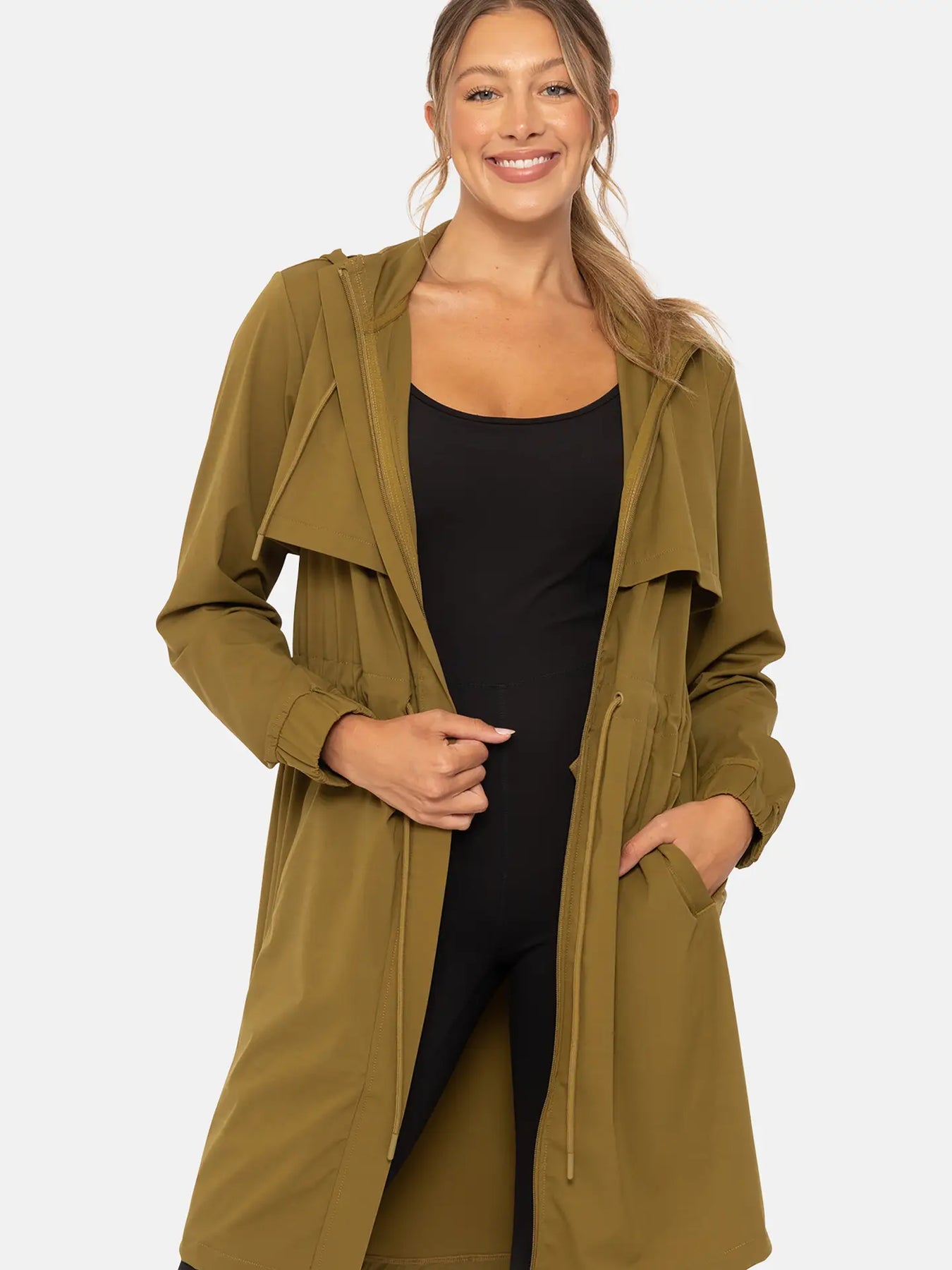 Perfect for any active lifestyle, this versatile mock neck jacket features a convenient zipper front and drawcords at the waist, allowing you to cinch in for a flattering fit. The elastic cuffs ensure a secure and comfortable fit, while the water-resistant fabric keeps you dry in unpredictable weather. The hip pockets provide ample storage for all your essentials, making it the ideal choice for on-the-go convenience.