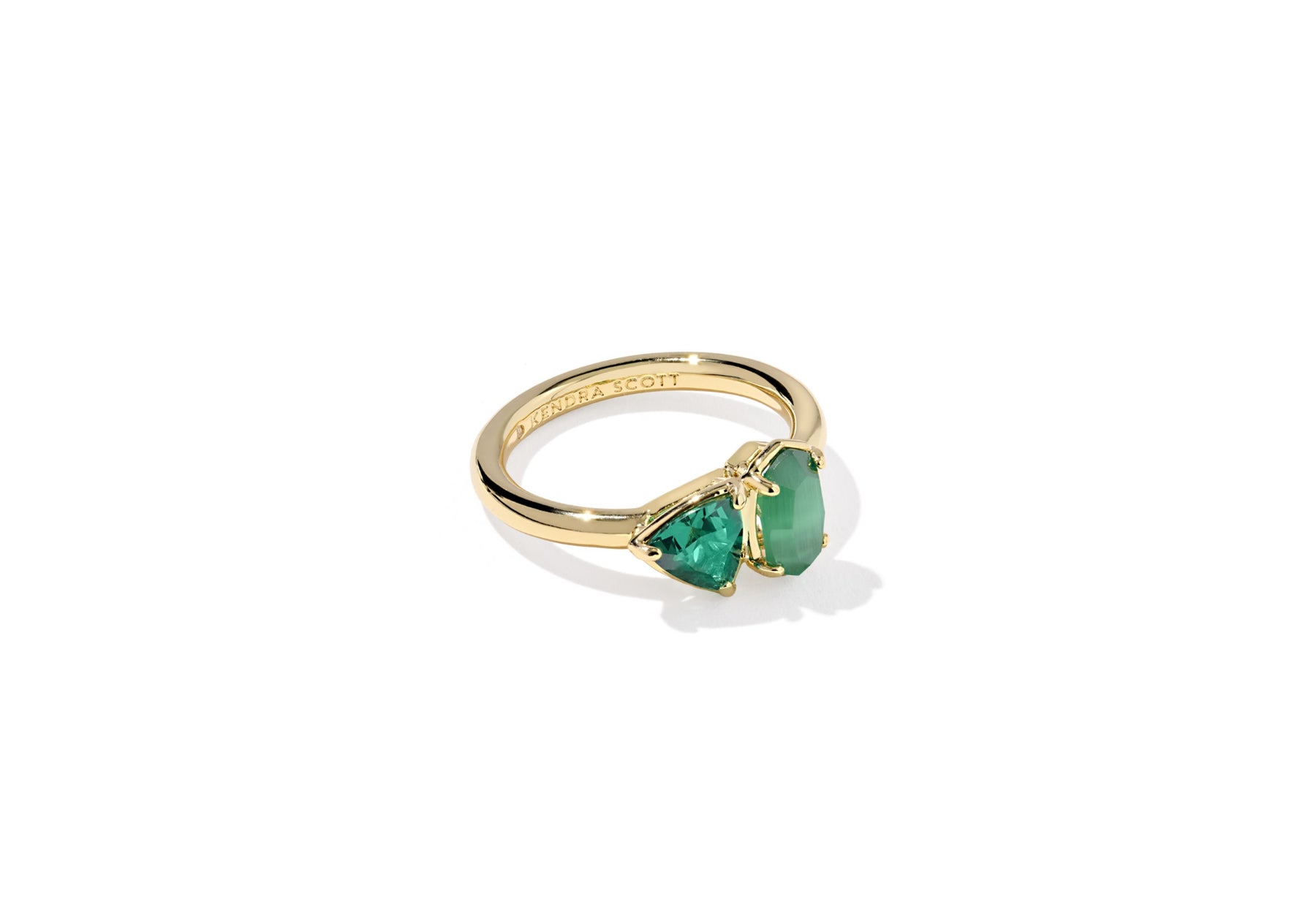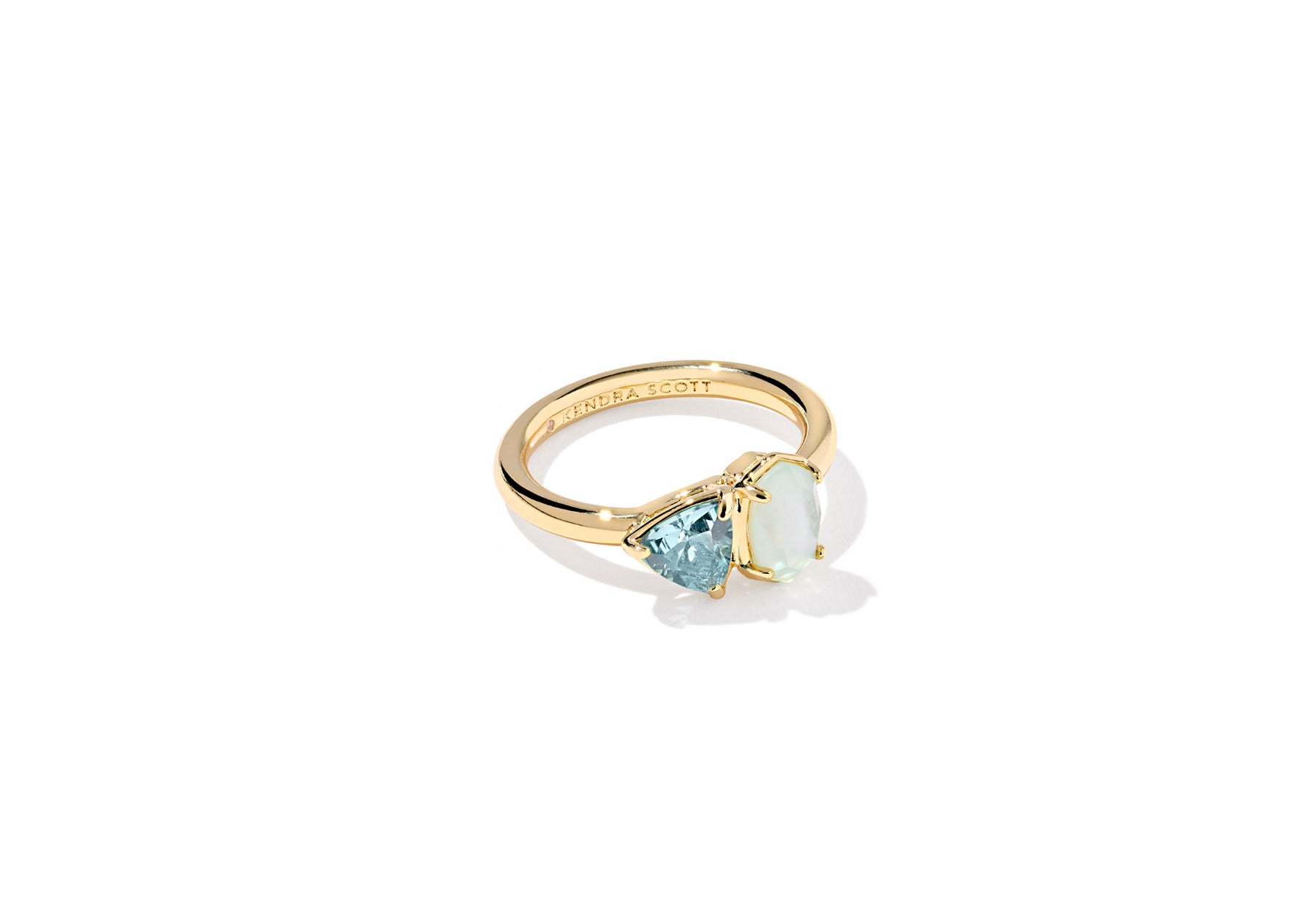 Elevate your everyday look with the Tatum Gold Band Ring. This toi et moi or “you and me” style features our signature Elisa shape paired with a trillion-cut stone in March birthstone-inspired shades on a classic band, making it a meaningful choice for any ring stack.